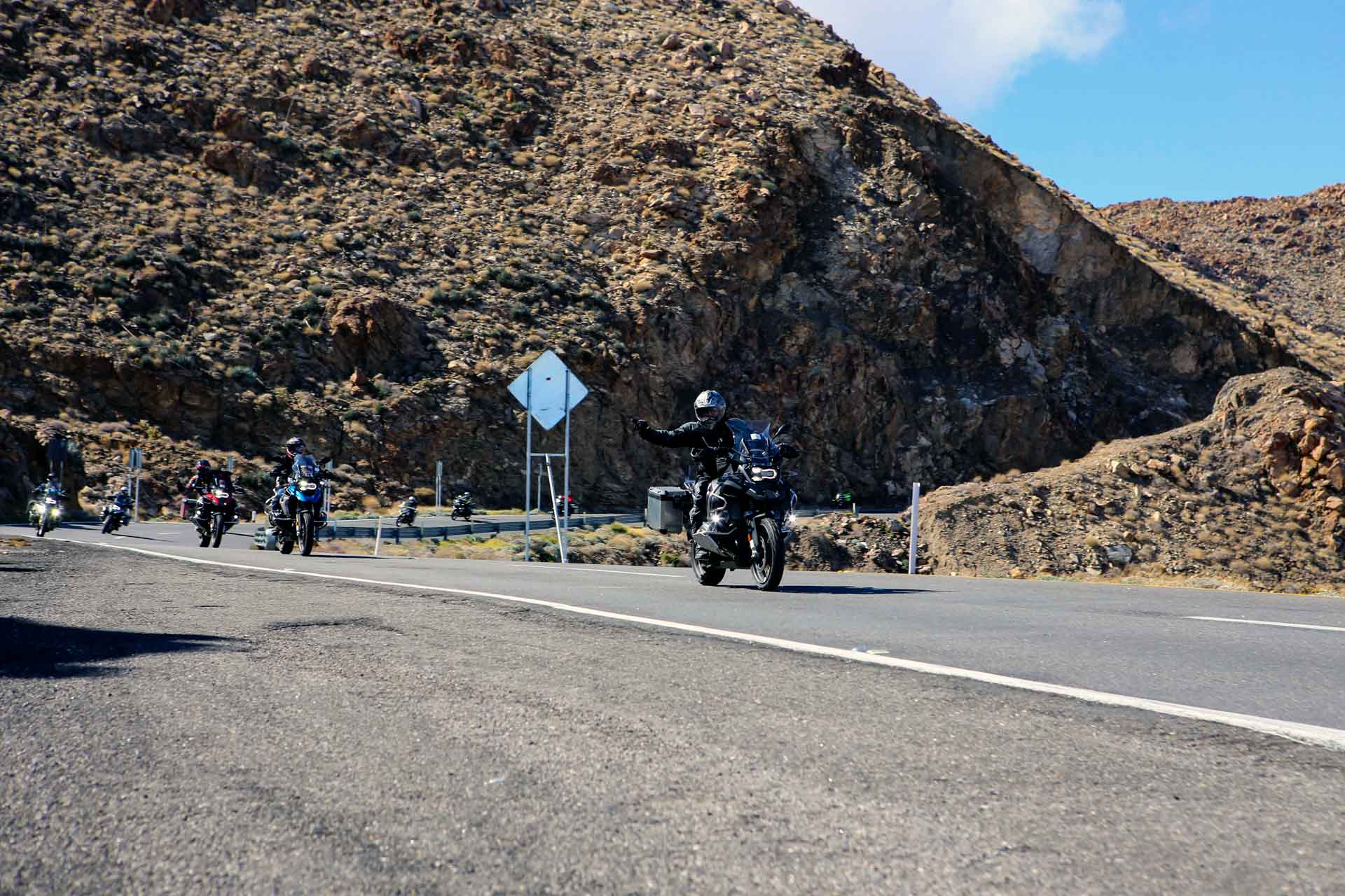 This trip is about 40% off-road, 20% beat up pavement, and the rest is good pavement, but it's ALL adventurous! It's an easy to low intermediate ride from a technical standpoint. Some rocky roads, and light sand are the most challenging parts of the ride.