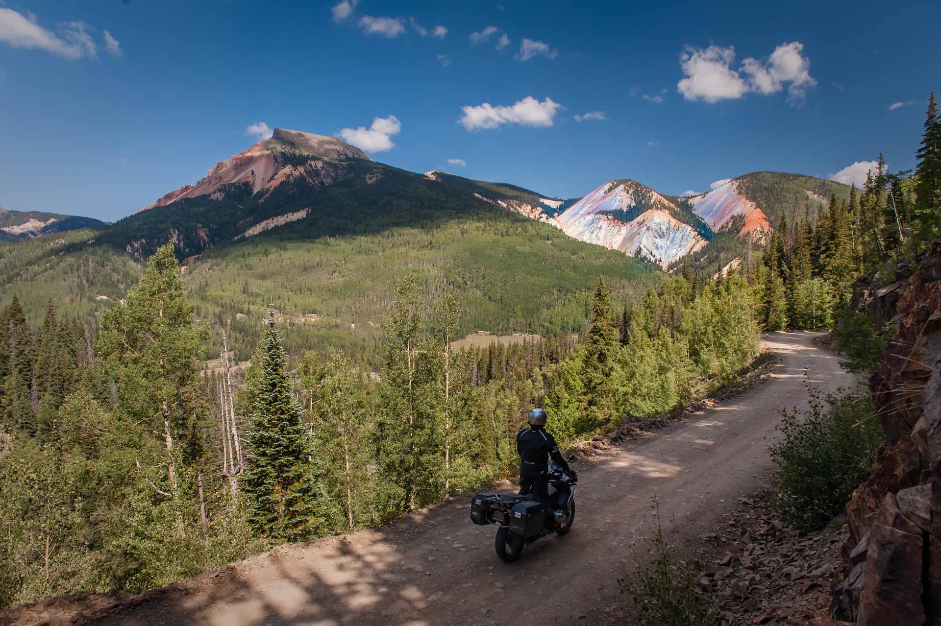 We rode among the Saguaro cactus of the Arizona desert, we scaled the 14,000 foot peaks of Colorado and in Wyoming we thundered over the western edge of the Great Plains on narrow dirt tracks with cattle grazing in the distance and we negotiated tight single tracks high in the Montana wilderness. This was American back country at its finest; an incredible journey through an amazing tapestry of landscapes; the harsh deserts of Arizona to the lush alpine settings of Colorado. The "hundred mile views" over the plains in eastern Wyoming and the "Big Sky" of Montana.